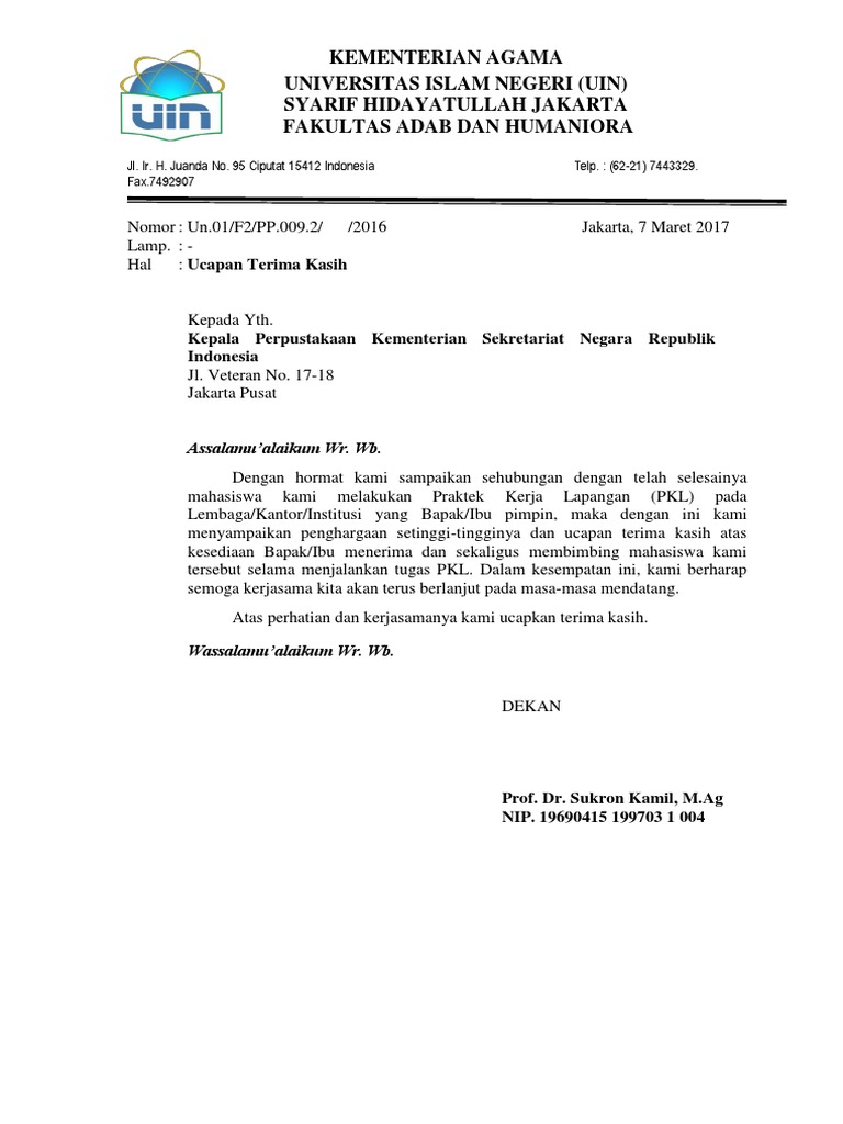 Top Pdf Surat Ucapan Terimakasih Selesai Praktek Kerja 123dok Com
