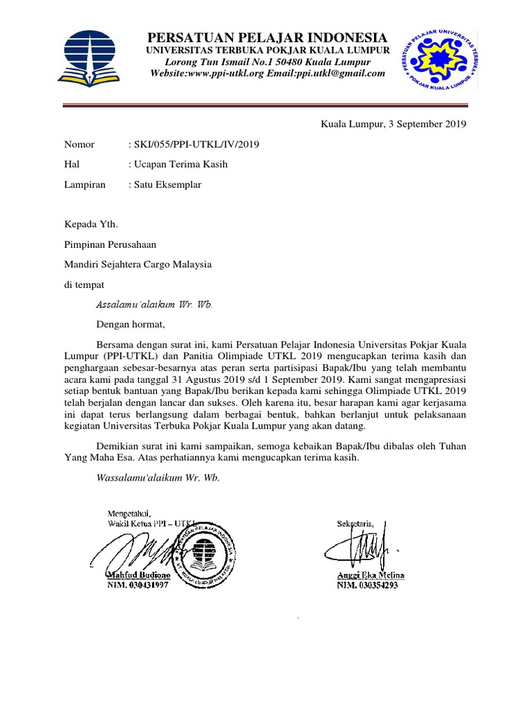 Surat Ucapan Terima Kasih Atas Kerjasama Pdf