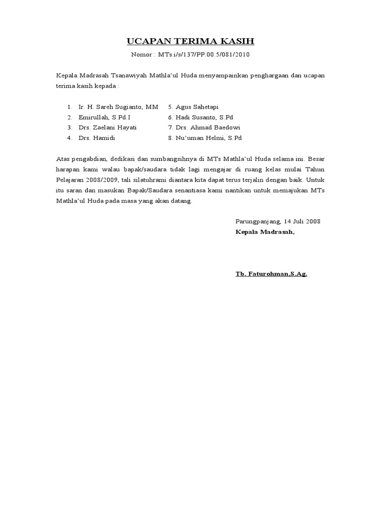 Surat Ucapan Penghargaan Dan Terima Kasih Letter 7saudara Com